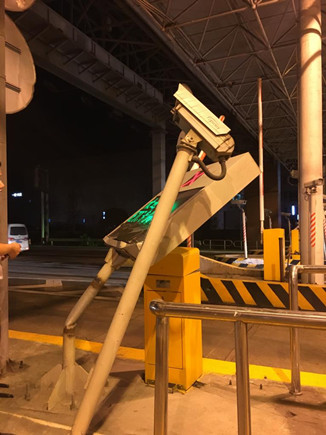 7月5日22點03分,機電設(shè)備維養(yǎng)中心接到臺州收費所當班班長小馬電話,稱該所ETC入口綜合顯示屏及抓拍攝像頭被一輛大客車撞彎,事故還導(dǎo)致出口欄桿不能正常工作,影響了出口車輛正常通行。