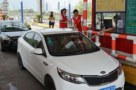 圖為活動現場 在“送清涼”的過程中,該所負責人還向他們送上公司領導的問候,對他們為了高速公路的有序暢通,總能在第一時間為收費所排憂解難,協助收費所處理糾紛及疏通擁堵車輛表示由衷的感謝。 派出所和交警隊的警官也對收費所送的“清涼”致以感謝,同時表示將一如既往的以強烈的社會責任感和對工作負責的態度支持收費站工作,共為營造安全、文明、和諧的通行環境作更大的貢獻。 當天上午,該所還組織部分志愿者在車道開展每年一次的“夏日送清涼”活動?;顒訙蕚淞说V泉水、綠豆湯、人丹、風油精等消暑、防暑物品,志愿者們頂著近40攝氏度的高溫酷暑,將一份份“清涼”送到了司乘人員手中,得到他們的微笑和感謝,受到他們的一致好評。 該活動持續了近3個小時,共送出5箱礦泉水,一桶綠豆湯,及人丹和風油精若干。 “送清涼”作為收費站延伸服務的一項內容,通過送清涼這個活動載體,真正地將文明服務落到了實處,做到服務方式多樣化,樹立臺州高速良好的窗口形象。 夏蓮萍
