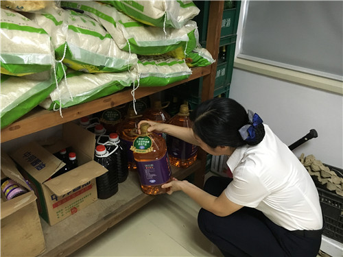 工作人員重點對食堂的內外環境、庫房、操作間衛生情況、餐飲廚具的清洗消毒情況、從業人員的采購登記、一日三餐留樣制度等進行了細致檢查。并對檢查過程中存在的問題當場要求食堂人員立即進行整改。