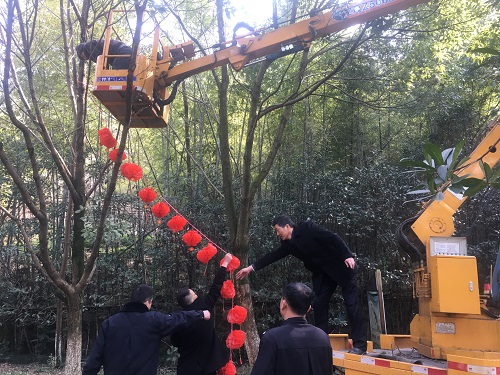 圖為掛好的燈籠 過年掛燈籠是中國古老習俗,紅色代表喜慶,圓形燈籠寓意團圓美滿。該所工作人員利用午休時間自制大紅燈籠750盞,并拿線連成串,大家借來登高車將燈籠掛在綠蔭道兩旁以及公路下方車輛經過的地方。遠觀這掛好的燈籠,一片紅火,形成春節(jié)期間一道亮麗的風景線。 一盞盞紅彤彤的燈籠將隧道所裝點得十分溫暖、祥和,注入了濃濃的年味和活力,同時也寄予了大家對新年美好的希望與祝福,希望往來的司機都能接收到這份祝福,過個平安祥和的幸福年。 毛譯聆