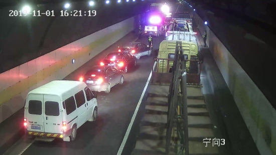 隧道內(nèi)三車追尾,“指揮員”“救援隊(duì)”“搬運(yùn)工”齊上陣 11月1日14時(shí)23分,黃土嶺隧道所中控員王之佳發(fā)現(xiàn)寧向隧道進(jìn)洞300米處超車道發(fā)生一起三車追尾交通事故。于是,執(zhí)勤隊(duì)員火速趕赴事故現(xiàn)場(chǎng)。 事故現(xiàn)場(chǎng),一輛貨車橫跨在超車道上,貨車上的桔子散落一地,現(xiàn)場(chǎng)一片狼藉,事故車輛占用了隧道內(nèi)僅有的兩個(gè)車道,導(dǎo)致后方車輛一度無(wú)法通行。所幸的是司機(jī)只有輕微受傷。