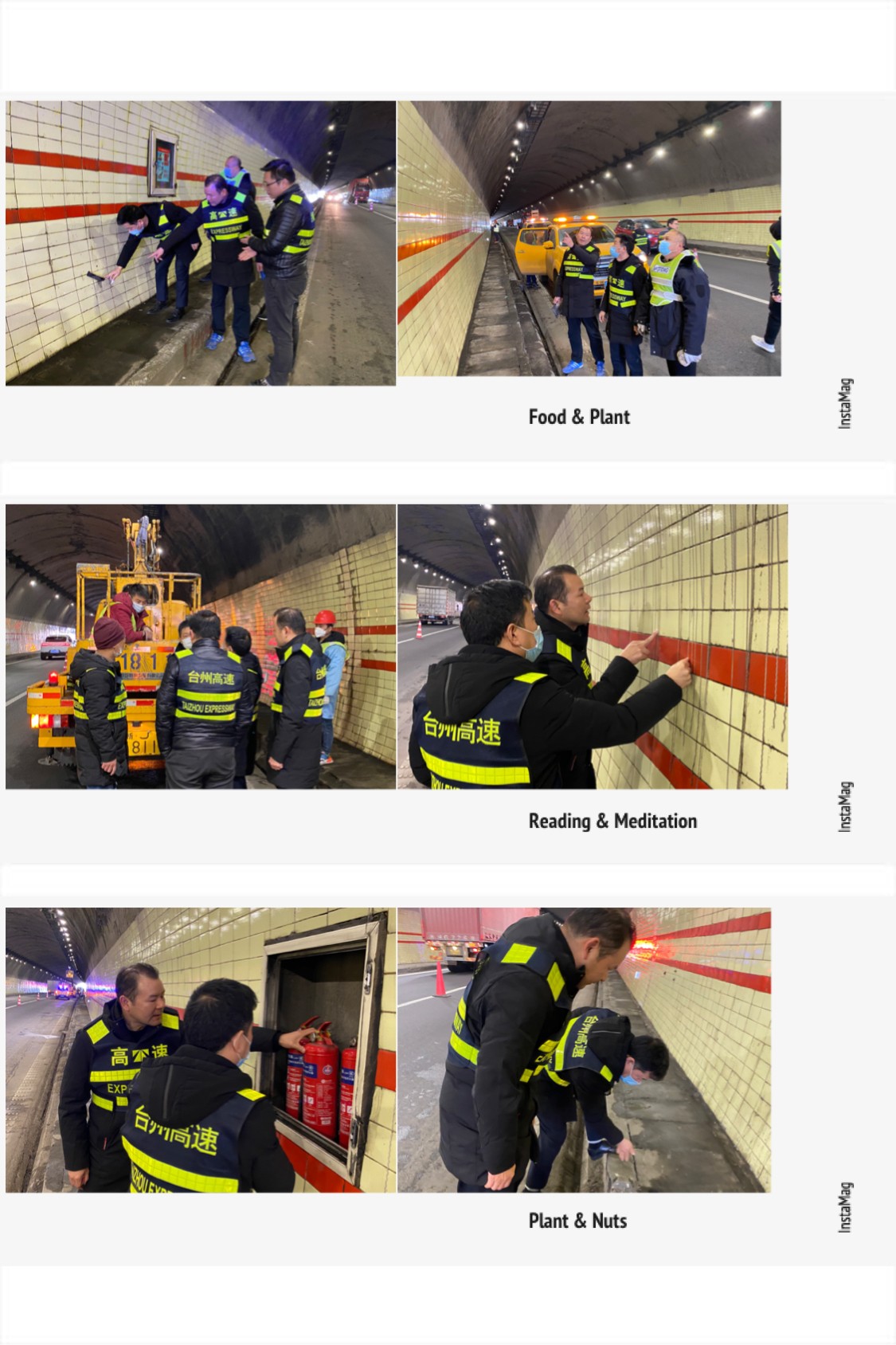 “洞口反光標牌再擦擦,這瓷磚用拖把搓一搓!” “隧道經(jīng)擦洗顯得更亮堂了。”