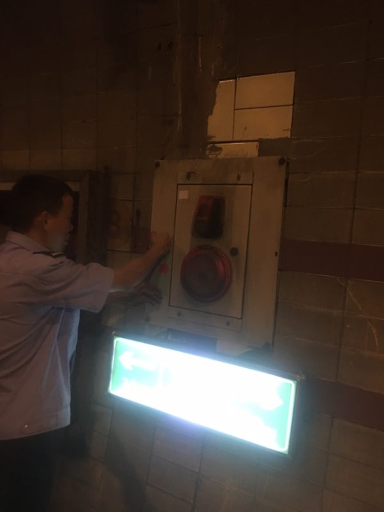 圖為張貼火災(zāi)報(bào)警提示標(biāo)語 此次隧道清洗工作主要針對隧道內(nèi)的機(jī)電設(shè)施維修與保養(yǎng),清潔監(jiān)控和照明燈,修復(fù)故障攝像機(jī);檢修消防設(shè)施,如火災(zāi)報(bào)警采用點(diǎn)火測試、手動報(bào)警、緊急廣播和電話測試,以及檢查消防箱;隧道內(nèi)指示標(biāo)記檢查,如人通、汽通檢查保養(yǎng),隧道風(fēng)機(jī)檢測,貼安全提示標(biāo)志,修復(fù)提示燈等。 隊(duì)員們放棄休假,加班加點(diǎn),借著隧道清洗一類施工的有利條件,把隧道內(nèi)需報(bào)修的各種設(shè)備進(jìn)行維修和保養(yǎng),保障了隧道內(nèi)機(jī)電、消防設(shè)施的正常運(yùn)行,排除安全隱患,為即將到來的中秋小長假提供明亮、安全的隧道行車環(huán)境。 陳智慧