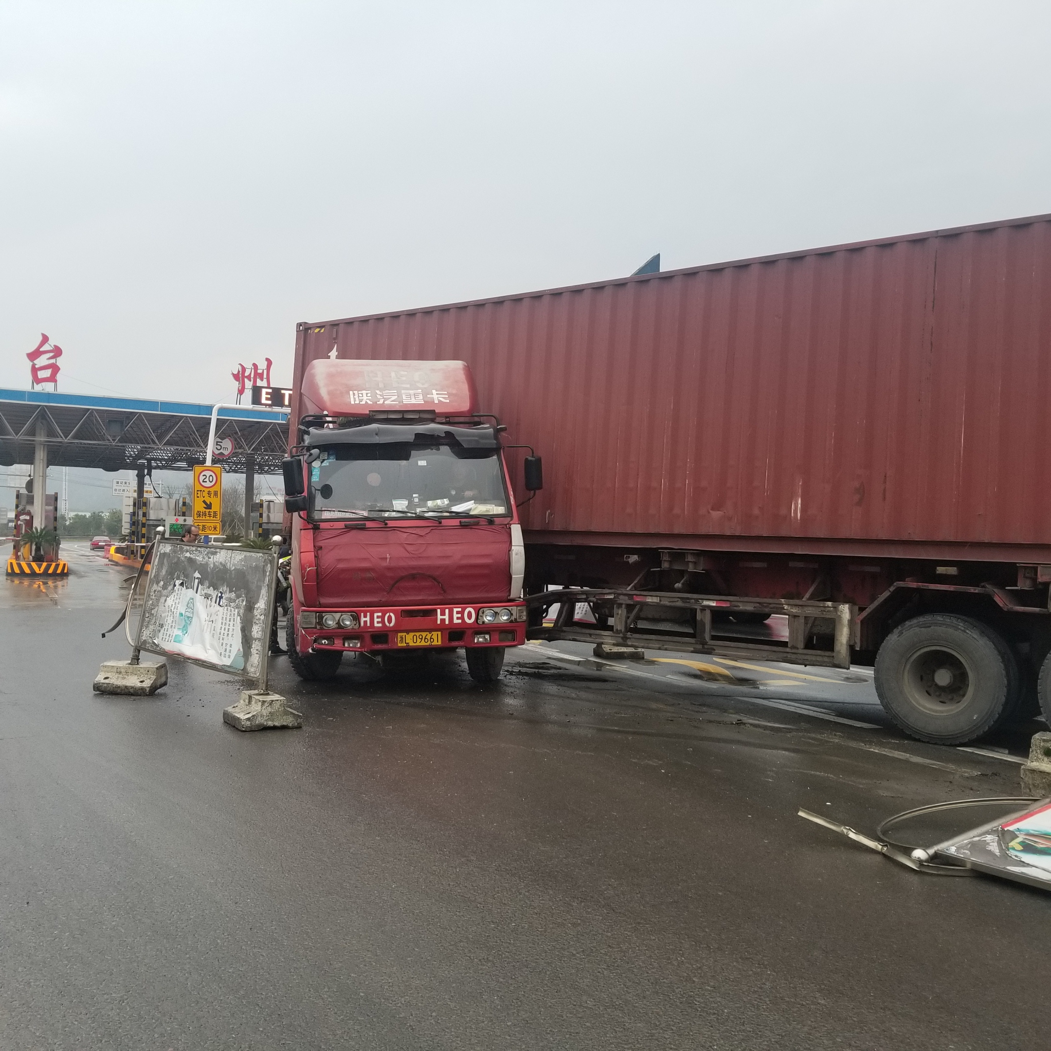 圖為大貨車(chē)碰撞隔離帶 施救中心和通遠(yuǎn)公司是這一片隔離帶損壞的見(jiàn)證者。早在2018年12月20日,一輛集裝箱大貨車(chē)由于打方向過(guò)急,就曾在此地來(lái)了個(gè)“龍回頭”,造成隔離帶的損壞。當(dāng)時(shí)施救中心和通遠(yuǎn)公司都參與了救援及理賠,費(fèi)了很大的勁才把這輛集裝箱大貨車(chē)引回道路。在后續(xù)把隔離帶恢復(fù)原位的過(guò)程中,由于隔離帶破損和水泥墩的沉重,不少人因此還受了傷。 此次,路橋通遠(yuǎn)公司在接到消息之后,行動(dòng)迅速,馬上組織人員趕到現(xiàn)場(chǎng)進(jìn)行清除作業(yè)。在忙碌了半個(gè)上午之后,終于把損壞的廣告式隔離帶全部清除。