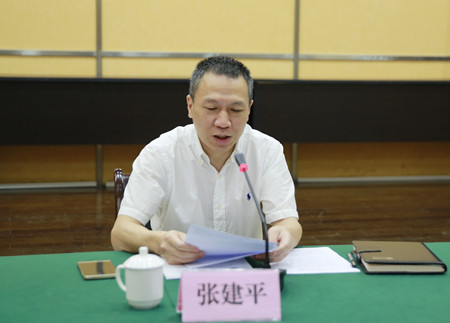 圖為公司副董事長、總經(jīng)理張建平主持會議