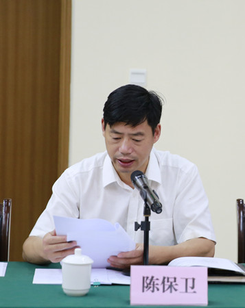 圖為公司副總經(jīng)理陳保衛(wèi)宣讀議案