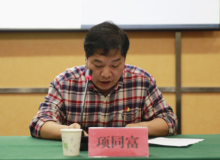 圖為安全總監(jiān)項(xiàng)同富傳達(dá)市長張兵在安全生產(chǎn)委員會(huì)會(huì)議上的重要講話精神