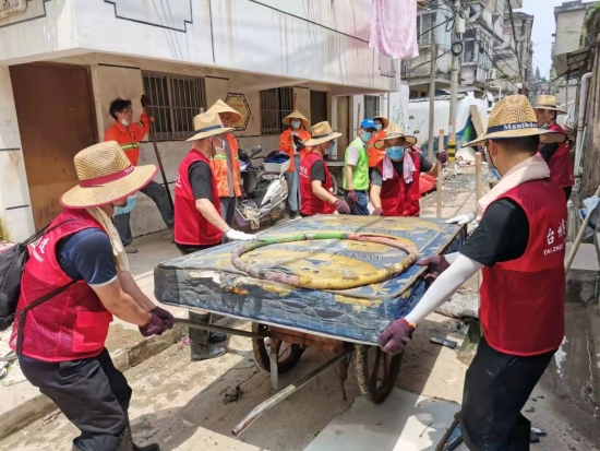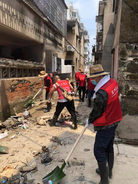 圖為臺州高速志愿者支援災(zāi)區(qū)重建現(xiàn)場 在臨海古城赤城路米篩巷,臺州高速集團的志愿者們頂著毒辣的太陽,不怕臟不怕累,積極為災(zāi)后重建貢獻力量,清理路面淤泥、垃圾,保障路面清潔以及道路順暢。 真情傳遞溫暖 愛心匯聚力量, 面對災(zāi)后重建, 臺州高速集團用實際行動, 彰顯鐵軍精神, 承擔社會責任, 展現(xiàn)使命擔當。