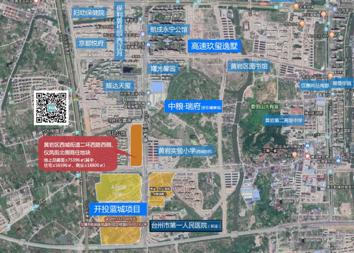 該地塊位于黃巖區西城街道二環西路西側、儀鳳街北側,耀達天璽南側。地塊出讓面積3.7698公頃,容積率1.0~2.0,可建地上總建筑面積75396㎡。地塊位于黃巖委羽山板塊,北臨黃巖老城中心,未來將以浙東健康城為重點,建成集道學文化、醫療、康養、商業、生活及休閑于一體的綜合性城市發展片區。距離內環線入口不超過2公里,周邊分布著實驗小學西城校區、文化館及臺州市第一人民醫院等配套設施,教育、醫療資源非常豐富,宜居宜業。