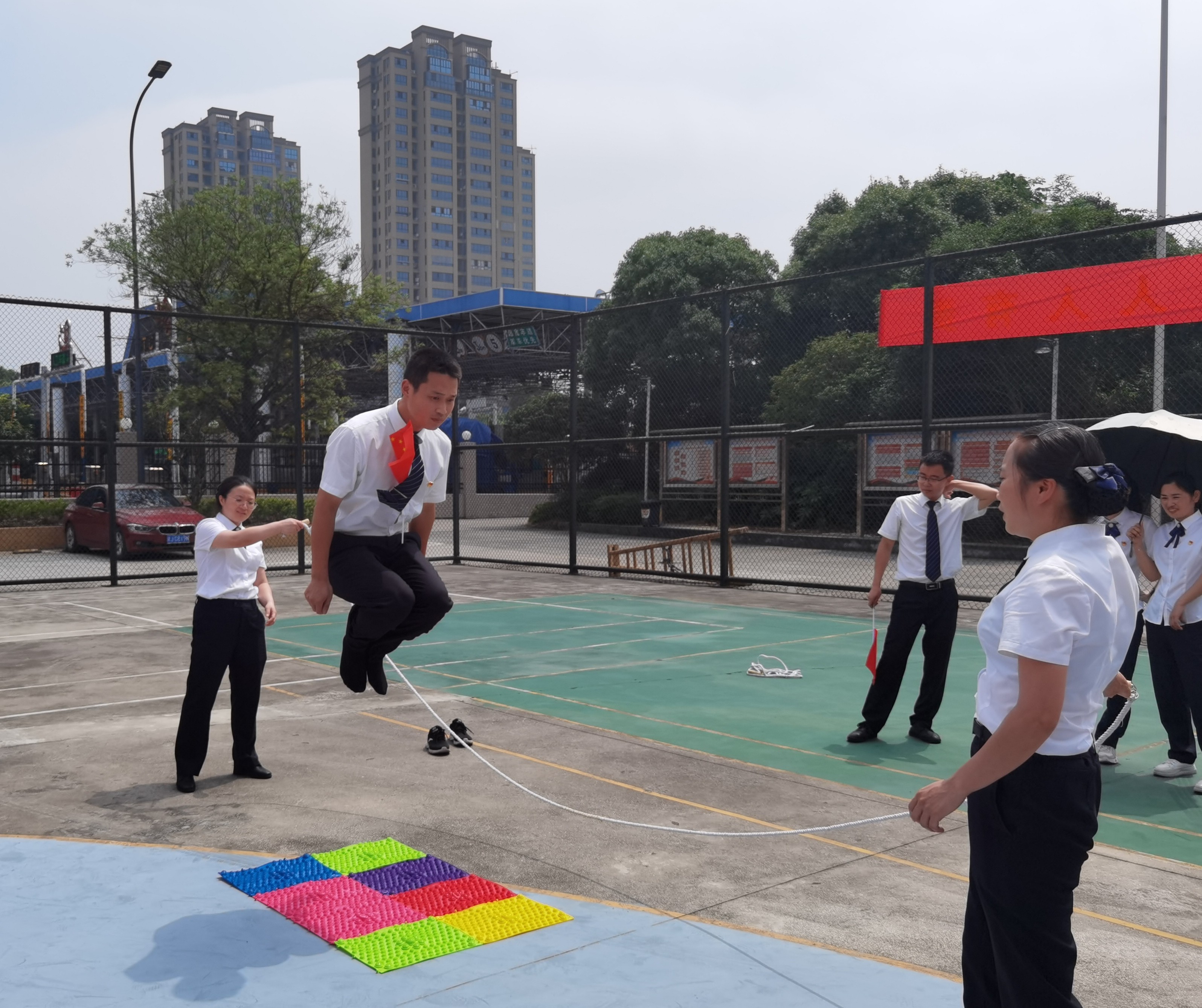 比賽過程中,各隊隊員情緒飽滿、團結協作,圍觀者加油吶喊,現場氛圍高潮迭起。 “我們舉辦此次活動的意在突破傳統黨史學習模式,創新性地將黨史知識學習同趣味活動相結合,通過開展黨史學習教育趣味運動,在宣傳好黨的光輝歷程和豐功偉績的同時,引導廣大黨員、團員繼承弘揚黨的光榮傳統和優良作風,并將其融入到日常的學習工作中去,內化于心,外化于行,以高昂的斗志參與到臺州高速建設工作中來,以嶄新的面貌和昂揚的斗志迎接建黨一百周年?!睖貛X西黨支部書記夏蓮萍介紹到。 此次趣味活動既是一次學習活動,更是一次友誼比賽,體現出溫度,凝聚起合力,增強了追趕超越的緊迫感和使命感。大家紛紛表示,要繼續發揚團結拼搏,以一百分的服務向建黨100周年獻禮。