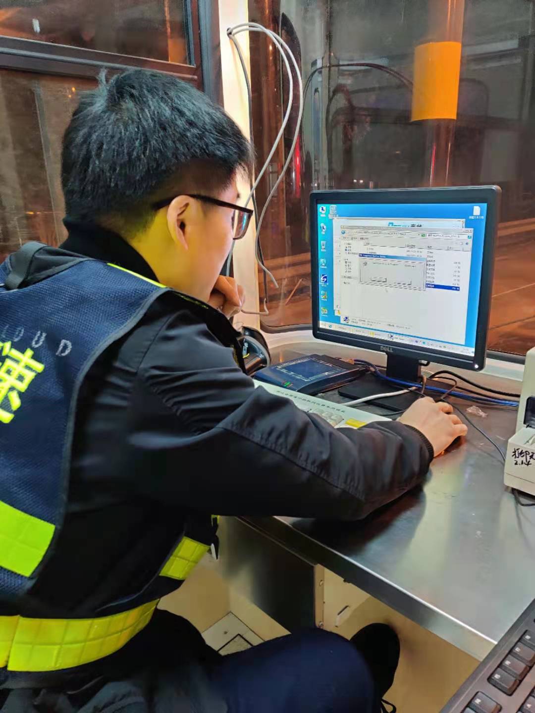 22日一早,中心電工配合廠家人員在車道繼續(xù)查線、接線,安裝崗亭的基礎設備,系統(tǒng)員則在機房負責安裝新電腦的收費系統(tǒng)及相關設備驅動。大家各司其職、各盡其責,僅一天時間就將近百根線纜一一對應并成功與外圍設備對接,與此同時,系統(tǒng)員也恢復了原電腦中的數(shù)據(jù)并成功導入到新電腦中,避免了數(shù)據(jù)中斷。在修復過程中,搶修人員也曾遭遇各種困難,有些設備安裝需要專用工具,部分零散配件、電源等一般商鋪都沒有供應,但這些并沒有難倒他們,而是利用各自資源,跑遍了市區(qū)的大街小巷,或借或買,最后都被一一解決。