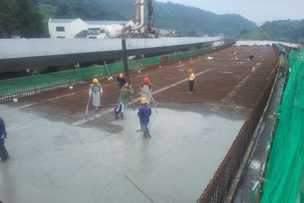 內環路6#立交主線橋主體結構順利完工 6月18日,內環路6#立交BB2主線橋完成了第一聯箱梁頂板的混凝土澆注,標志著6#立交主線橋主體結構全部完工。