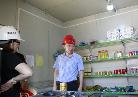 圖為集團副董事長、總經理張建平檢查內環路8#立交民工小賣部